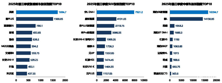 2025年前三季度车型投诉指数排行