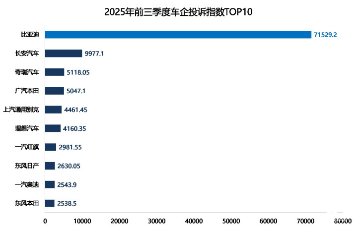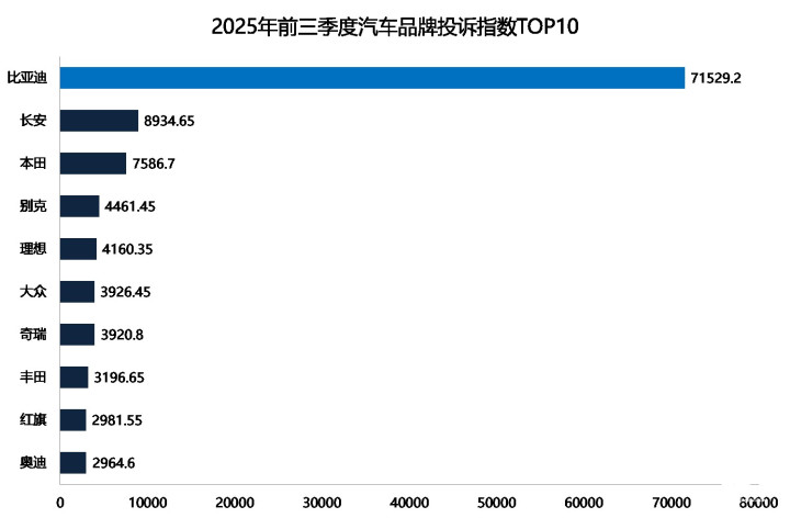2025年前三季度汽车品牌投诉指数排行