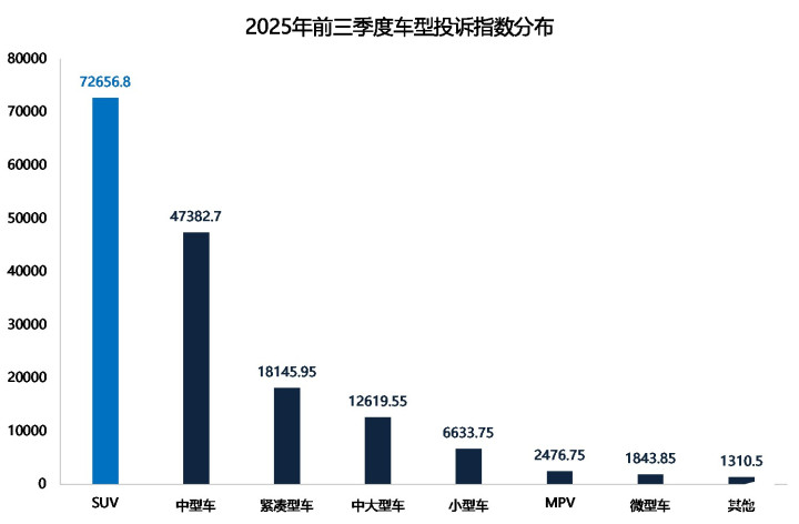 2025年前三季度投诉指数车辆类型分布